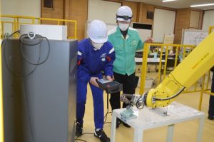 初日はロボットのメンテナンス作業を体験してもらいました。