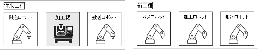 1. 搬送と加工の工程をロボットで一体化することで、ワークの載せ替えや段取り替えの手間が削減され、生産効率が向上します。